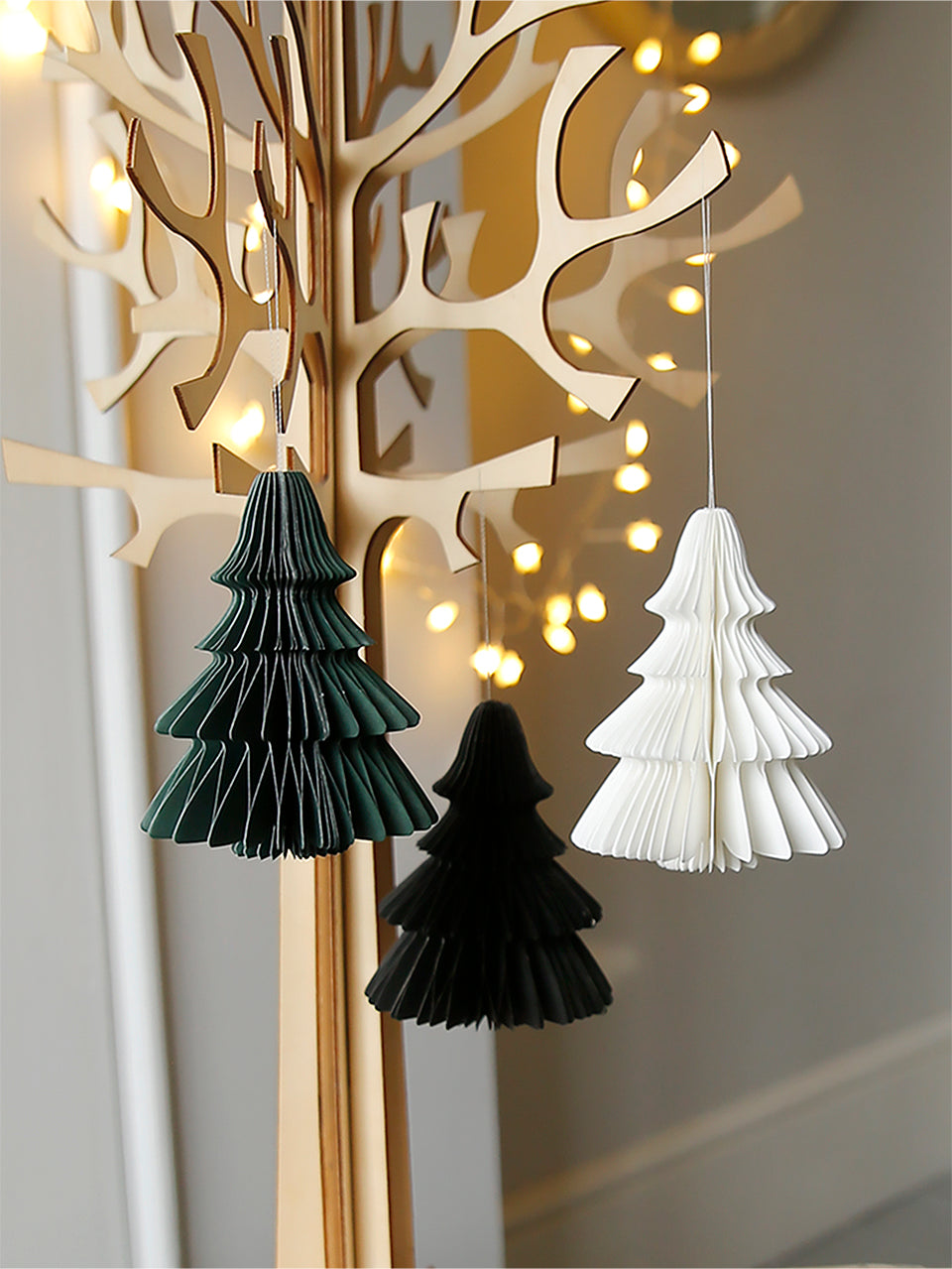 Es gibt so viele Möglichkeiten, diese attraktiven Dekorationen im ganzen Haus zu platzieren; als Tischdekoration, auf Regalen in Kinderzimmern, entlang von Kaminsimsen und natürlich zum Aufhängen am Weihnachtsbaum. Diese nachhaltigen Weihnachtsdekorationen aus Papier haben einen zeitlosen Charme und sind immer wieder verwendbar.