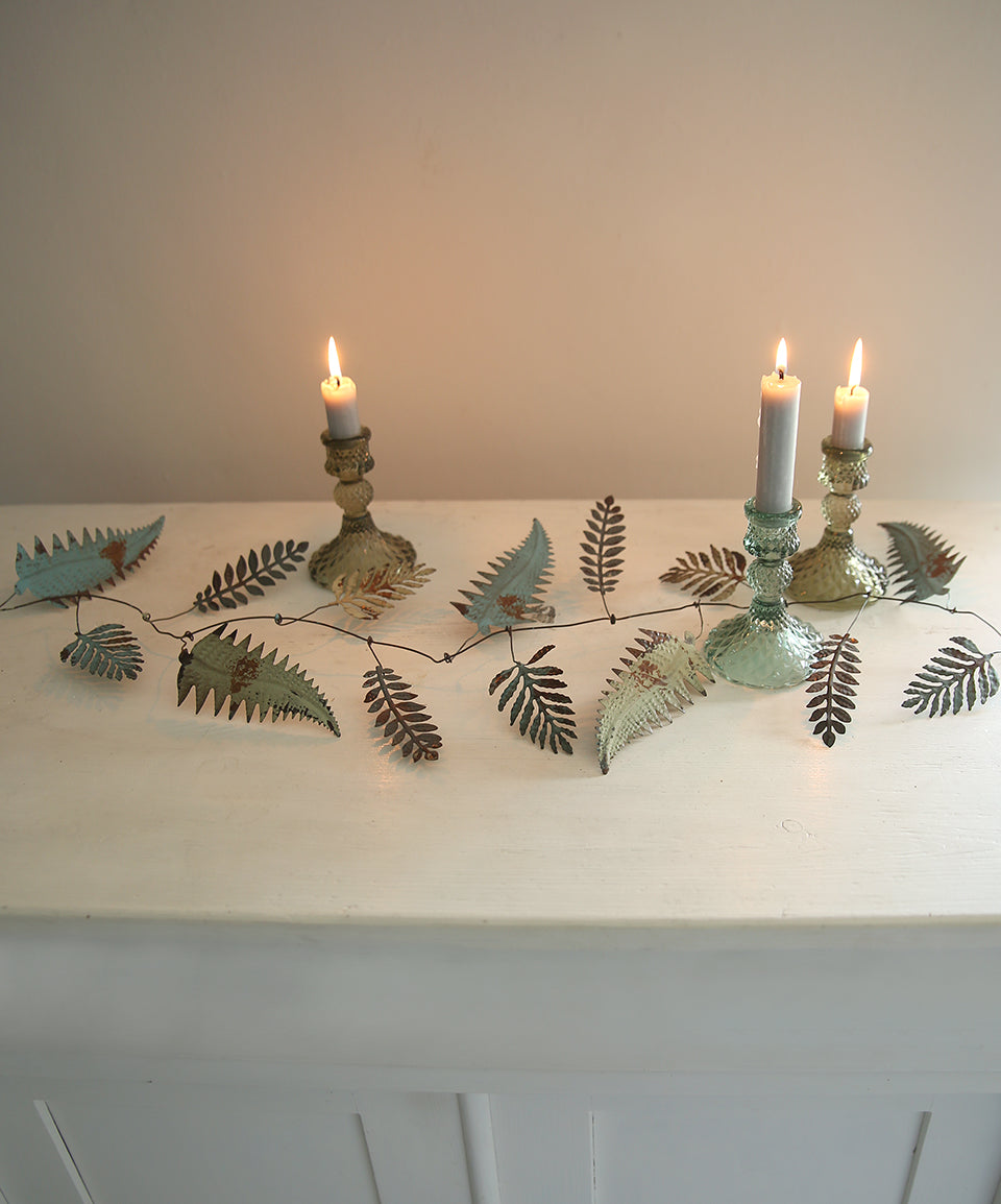 Verschönern Sie Ihren Kaminsims mit dieser atemberaubenden Blättergirlande im Vintage-Stil. Sie eignet sich ideal zum Aufhängen an einem freiliegenden Balken und verleiht Ihrem Wohnraum eine festliche und zugleich elegante Note. Wir finden, dass sie das ganze Jahr über verwendet und je nach Jahreszeit dekoriert werden kann.